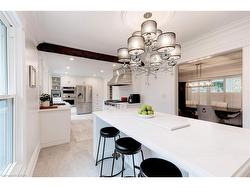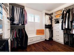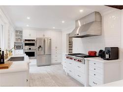 STUNNING sprawling 4-bedroom home in South Burlington's sought-after Shoreacres neighbourhood. Showcasing true pride of ownership. Custom millwork 7-inch baseboards, wooden shutters, antique scraped oak hardwood floors throughout. Recently renovated sun-filled kitchen fitted w/ 48-inch Wolf 6-burner w/ indoor BBQ gas cook top, dual motor 48-inch hood range, 48-inch Kraus Workstation Sink & Professional Frigidaire appliances, counter-depth fridge, B/I wall oven and convection oven and dishwasher. Kitch island comfortably seats 6, w/quartz countertops & high-end custom cabinetry deep pot & pan drawers +pantry. Enjoy entertaining in the separate well-appointment dining room fitted with built-in cabinets for elegant additional storage. Great room is excellent for entertaining & lounging. Tranquil primary bed boasts his & hers closets w/organizers. 2nd bed is of great size. 3rd bed fitted w/ custom dressing room (removable) w/built in ironing board & additional large closet. 4th bed on main floor is fitted w/a double closet, makes for a great in-law suite, 4th bedroom or den. Renovated main bath includes framed cavity intended for main floor shower addition. Enjoy the private pool-sized lot hardscaped w/modern concrete & mature gardens for easy maintenance. Close to sought-after schools (John T. Tuck-Public Elementary School & St. Raphael's Catholic Elementary School. Steps to hiking, waterfront, Paletta Mansion, Tails & Parks. Minutes to Burlington Go-stations & all major hwy's.