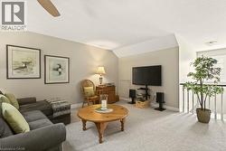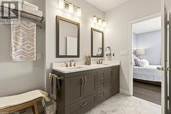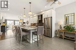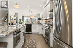 Absolutely stunning executive bungaloft in sought-after complex backing on to the 10th fairway of Millcroft Golf Club! 2,281 sq.ft. of beautifully updated open concept living space filled with natural light. Updated eat-in kitchen with stainless steel appliances (including gas stove and wine fridge), island, quartz countertops and glass subway tile backsplash. Spacious living/dining with vaulted ceiling, gas fireplace and walkout to private deck and patio with gas BBQ hookup and stunning golf course setting. Main level primary bedroom with a gorgeous spa-inspired 4-piece ensuite and walk-in closet. Upper level features a large loft/family room and a second bedroom with access to a 4-piece bathroom. Additional features and high-end finishes include 9' ceilings on the main level, hardwood floors, California shutters, pot lighting, skylights and an updated furnace (2024)! Double drive and double garage with inside entry to main level laundry/mudroom. 2 bedrooms and 2.5 bathrooms. (id:27)