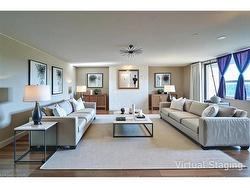 Welcome to The Empress offering a worry free lifestyle. Opportunity knocks for thiswell managed, maintained and secure building located in a central location. Walk toDenninger’s, the Bank and the Burlington Mall right across the street. Features ofthis south facing 7th floor unit include: 24 hour security offering you continuedpeace of mind, panoramic views of south Burlington & the lake from your 19 ftbalcony, in suite laundry, 1 underground parking space, an abundance of visitorparking, newer windows and doors in 2011. This bright and spacious unit offersapproximately 1400 SF with 3 bedrooms and 1 1/2 bathrooms, 2 in suite storage rooms. Some photos are virtually staged.