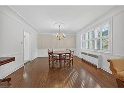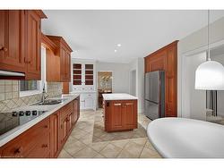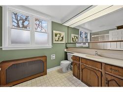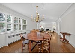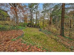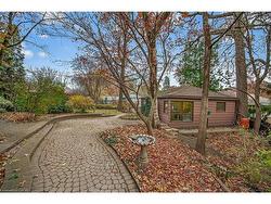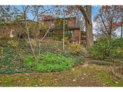 Beautifully maintained & cared for, this home sits on a double-wide lot surrounded by 32 species of trees. Same family for over 50 years. Eat-in kitchen has movable island & solid cherry custom cabinetry; opens to a heated, sunlight solarium. Combined living/dining room features hardwood floors, gas fireplace, views of private ravine. Main floor bedroom/office w/ a 2-pc ensuite w/ heated floor. Upstairs: 3 bedrooms, large central landing, built-in bookcases, 4-pc bathroom & walk-in hall closet. Basement could be a self-contained unit w/ exterior access to the yard. Currently this space has large laundry room, 3-pc washroom w/ heated floor, a den w/ fireplace, office, 2 studio spaces. 4-vehicle driveway w/ double car garage divided to include a hobbyist’s workshop. The privacy of this lot is one to admire; interlocking patio area, walking path & stairs to the lower yard & ravine. This property is one of a kind & must be seen to be truly appreciated. Steps to the lake, LaSalle Marina, Burlington Golf & Country Club, schools. Quick access to GO station & hwy.