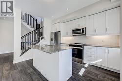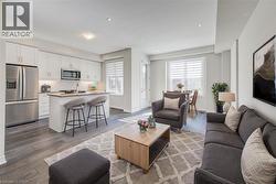 STYLISH. SPACIOUS. STEPS FROM IT ALL. Welcome to your next chapter in this modern townhome—#116-10 Birmingham Drive, Cambridge. Tucked into a vibrant and walkable community, this home spans 3 thoughtfully designed levels and offers over 1,350 sq ft of sun-filled living space. From the moment you step inside, you’re greeted by contemporary finishes and a bright, open-concept layout that feels both welcoming and functional. The heart of the home is the main living area—anchored by a sleek kitchen featuring granite countertops, stainless steel appliances, custom 39” upper cabinetry with LED lighting, and a breakfast bar perfect for casual meals or morning coffees. The adjoining family room flows effortlessly to a private, covered terrace balcony—an ideal spot to relax and unwind. Upstairs, the primary retreat is your private escape, complete with a walk-in closet, private balcony, and upgraded blackout blinds. A second bedroom offers ample space for guests, family, or a home office, while designer carpet and mirrored closets elevate the space. The 4pc bathroom completes this level. The ground level offers bonus flexibility with in-suite laundry and convenient interior access to the garage—plus a second private entrance and your own driveway. With two-car parking (garage + driveway), upgraded pot lights, smart storage, smart exterior lights, 200AMP panel, and custom window treatments throughout, every detail has been carefully curated. Located just minutes from shops, restaurants, parks, schools, and highway access, this move-in-ready home checks every box. Whether you're a first-time buyer, busy professional, or savvy investor—this is one you don’t want to miss. Photos are Virtually staged. (id:27)
