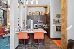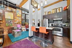 Rarely Available Ground Floor One Bedroom Authentic Loft with Red Brick and Exposed Beams and 13 Foot Ceilings. This Corner suite has Large Windows and quiet NE views. This one bedroom, one bathroom unit features Parking, Ensuite Laundry and plenty of storage, Granite counters in the Kitchen and Bathroom & Stainless Steel Appliances. The Blacksmith Lofts was built in the late 1800's and converted into a boutique condo with only 27 units. There is a shared rooftop patio for all to enjoy. Walking distance to The Gaslight District, Grand River, U of W School of Architecture, Hamilton Family Theatre, library, coffee shops, running/bike trails and quaint downtown shopping! (id:27)