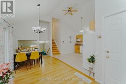 Charming & move-in-ready 3-bedroom backsplit with finished basement detached home in a quiet, family-friendly neighborhood. Surrounded by amenities and steps from schools, shops, and green space, this home offers comfort, space, and convenience. Rare floor plan with less stairs in the neighbourhood. Cathedral ceiling on main level and spacious living/dining area where large windows fill the space with natural light, complemented by beautiful hardwood floors throughout and an open dining area ideal for family dinners and entertaining. The open-concept kitchen blends style and function with wooden cabinetry, tile backsplash, double sink under a large window, and all appliances included-gas stove, dishwasher, and microwave-making everyday living effortless. Up a few steps are three generous bedrooms, each with ample closet space, hardwood flooring, large windows, and neutral tones. Two full 3-piece washrooms include a well-appointed bath with tub/shower, oversized vanity, and tile flooring. The finished basement features a rec room with hardwood flooring, perfect for a home theatre, games room, gym, or play area. Enjoy the private, fully fenced backyard-ideal for BBQing, gardening, or watching kids and pets play freely. Located on a quiet street with minimal traffic, just around the corner from a shopping center with groceries, pharmacy, and dining, a short stroll to a public school, and minutes to charming restaurants and boutiques, this home offers an ideal mix of space, privacy, and everyday convenience. (id:27)