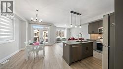 Welcome to 84 -143 Elgin Street North Cambridge. This beautifully finished end-unit townhouse offers 3 bedrooms, 2.5 bathrooms, and is completely move-in ready-delivering the perfect balance of luxury, comfort, and everyday convenience. Ideally located between Franklin Boulevard and Dundas Street North, this home is close to all major amenities including restaurants, shopping, parks, schools, and more. Step into an expansive foyer and versatile den space, perfectly complemented by seamless interior access to the garage. Just a few steps up, the open-concept main level is designed for both daily living and entertaining. The stunning kitchen features stainless steel appliances, stylish backsplash, under-cabinet lighting, and ample counter space-perfect for those who love to cook. A large island provides seating for three, while the adjacent dining area easily accommodates a table for six. The kitchen flows seamlessly into the spacious living room, complete with French doors leading to a charming front walk-out Veranda. A convenient two-piece bathroom and laundry room completes this level. Upstairs, you'll find three generously sized bedrooms, including a primary suite with walk-in closet, 3pc ensuite with walk-in shower. Two additional bedrooms and a full 4-piece bathroom provide comfortable space for family, guests, or a home office. Don't miss this fantastic opportunity to own a beautifully finished, move-in ready home in a central Cambridge location. (id:27)