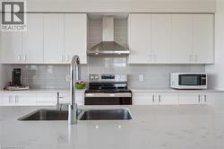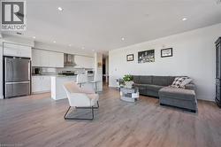 Stunning view from this 9th floor unit in The Gaslight District! Discover this lovely 2-bedroom, 2-bathroom corner condo just steps from the Grand River, offering spectacular treed views of West Galt. With 9-foot ceilings, laminate flooring, and an open-concept layout, this home combines style with comfort. The spacious living room flows into a modern kitchen featuring sleek white cabinetry, quartz countertops, upgraded stainless steel appliances, and a large island perfect for cooking and entertaining. Enjoy direct access to the full-width balcony from both the living room and the primary suite. The primary bedroom includes two closets and a spa-like 4-piece ensuite with double sinks and a walk-in shower. A second bedroom, full 4-piece bath, and convenient in-suite laundry complete the space. One parking spot is included. Being a corner unit not only do you get extra windows, but you get a fantastic view of both the North and West sides of the building. Residents enjoy exceptional amenities: numerous lounges, games room with billiards and ping pong, a state-of-the-art fitness and yoga studio, stylish party room with bar, co-working spaces, and multiple outdoor terraces overlooking Gaslight Square, complete with fire pits, pergolas, and BBQs. Step outside to enjoy the vibrant lifestyle-walk the Grand River trails or explore downtown's cafes, shops, and the weekend Farmer's Market. Experience the best of The Gaslight District- with events and fabulous restaurants! Maintenance Fee also includes gas and internet. Book your private showing today! (id:27)