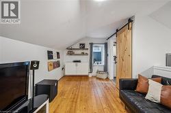Looking for the perfect starter home in downtown Hespeler? This beautiful century home w/loft is priced competitively to many condos, but comes with the perks of a single-family home including a private backyard and dry basement storage. The kitchen is re-modeled with newer cabinetry, counters, sink, and flooring. The living room has vintage pine flooring with a modern black accent wall and built-in fireplace w/mantle. Upstairs you'll find more pine flooring in the cozy bedroom and den (which can easily be transformed into another bedroom). The bathroom has been updated with a walk-in tiled shower and heated flooring! Downstairs provides an adequate laundry area (washer/dryer) and ample storage. Step into the private fully-fenced backyard with poured concrete sitting area, covered roof, and turf grass for minimal maintenance. Just a stroll away from downtown picturesque Hespeler with easy access to the 401, central to Cambridge, Guelph and Kitchener. All electrical updated, gas furnace and newer A/C, Ecobee, water softener (2024), water heater (rented - 2024), kitchen flooring (2025). (id:27)