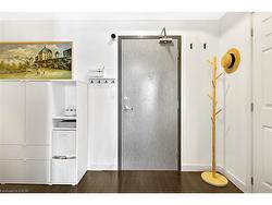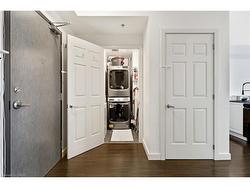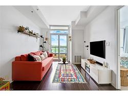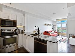 STUNNING VIEWS! 687 Sqft unit, one bedroom plus Den, one bath, open concept great room and kitchen, and 125 Sqft. balcony. Bright and sunny unit with floor-to-ceiling windows that provide an unobstructed view of the city core and the fall-colours, and view of the Grand River and the multiple bridges of the historic and architecturally renowned downtown Galt as well as magnificent sunsets. Walking distance to trails, parks, theatres, boutique shopping, restaurants, churches, places of worship, 2 public libraries, farmer’s market, schools, UW campus, the pedestrian bridge, the Gaslight district, public transportation, minutes to 401, and much more. Condo fees include all utilities except hydro (average $50/month), all amenities are free except the guest suite $75 for 1st night for cleaning. Offers an awesome fitness centre 24/7, Guest Suite, Party Room with walkout to an impressive Garden Terrace with BBQs and dining area for all your entertaining needs, and lounging area overlooking the Grand River. This building has a community living feel with all the social activities for various events including Christmas dinner/New Year celebrations, games night, gardening, book club, and much more. Secured entry building with security cameras.