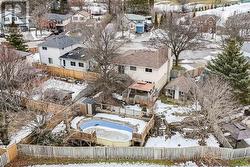 Well-maintained raised bungalow on a quiet court, backing onto a school. Bright East/West exposure and walking distance to shopping, services, places of worship, and schools. Features 3 bedrooms, 2 bathrooms, open-concept layout, and easy-care flooring throughout. In-law suite setup with two separate living areas-ideal for multi-generational living. Recent updates include new pot lights (2025), owned hot water tank (2025), and new window coverings/blinds (2025). Enjoy a large deck, fully fenced backyard, and above-ground pool. Spacious shed for storage or hobby use. Single-car garage with extra storage and parking for two cars. Excellent family home in a convenient location. (id:27)
