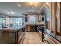 Former Model home occupied by loving original owners! Absolutely stunning home with In-law or Teenager's suite on a private side of the home with walk-in closet and full bath! Meticulously maintained Feng Shui oriented home with a Heated Sunroom and a Stunning staircase built to size in the home! You will be charmed by the elegance and charm of this home with extensive Crown molding, Hardwood, Wrought iron special designed mirrors & cabinetry, Extensive Granite & Marble as soon as you step into this home that just keeps going on and on. The home spans over 5,000 sqft of living space with 5 bedrooms, 3.5 bathrooms, amazing Sunroom with gas fireplace and heated marble flooring open to both sides of the yard with sliders, 4 bedrooms on second level with 3 full baths, Master bedroom with two Walk-in closets or make one into Nursery plus a Spa like ensuite with a Soaker tub, Glass shower, Heated towel bar, His & Hers sinks, marble heated floors; Fully finished basement with oversized L-shape Rec room with gas fireplace, Exercise room, extra pantry/wine cellar. The main floor has an elegant office with wood paneling, Formal dining room with a beautiful one piece special design mirror, Living room/working room for home business, Family room/Den with a cozy gas fireplace, modern Chef's kitchen with marble countertops with top of the line appliances! The yard is fully fenced, has mature trees and is full of beautiful perennials. The home was fully renovated in 2018-19 Kitchen, Basement, Sunroom, Mudroom, Spa Ensuite, Powerless Kinetico water softener with torking system, RO, Eaves Guard, All new potlights, All windows, Front door. Other updates include: Roof 2012, AC 2017, Central Vacuum, Furnace & Hot water heater Nov 2024, Gas hook up for BBQ. Double garage plus the interlock driveway can park 6 cars! Just minutes from 401, Shopping, Schools, Trails, This home is a rare find that offers a perfect blend of luxury and elegant living style in a family oriented neighborhood.
