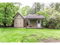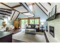 Nestled on a picturesque 0.7-acre lot surrounded by mature trees, this stunning A-frame home is a peaceful escape with the charm of a countryside lodge and the modern touches of a thoughtfully updated retreat. Located just minutes from Puslinch Lake, and a network of conservation trails, it’s a rare opportunity to enjoy the privacy of rural living with city convenience nearby. The home offers 6 bedrooms and 3 full bathrooms across three above grade levels, including the fully self-contained, 2-bedroom in-law suite on the main level — perfect for extended family, guests or a young adult craving their own private space. A custom walnut-encased spiral staircase winds through the heart of the home, connecting each level with architectural flair. Upstairs, cathedral ceilings, wood-burning fireplace and exposed beams give the living areas warmth and character. The updated kitchen features Corian countertops, stainless steel appliances, and overlooks the backyard oasis. Step out onto the two-tiered composite deck with sleek glass panel railings to take in views of vegetable gardens, a horseshoe pit, firepit, gazebos and 2 sheds for additional storage. It is the perfect space for year round entertaining. The expansive detached garage includes a workshop, and driveway offers 8 additional parking spaces to accommodate all of your guests. The second-floor balcony and third-floor terrace offer quiet spaces to sip your morning coffee or wind down with a book. With its welcoming charm and storybook setting, this property captures that cozy, timeless feeling like it belongs in a Hallmark movie.