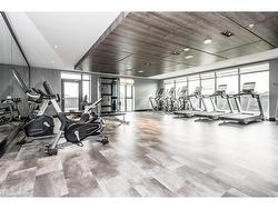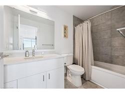 Stunning view from this 9th floor unit in The Gaslight District! Discover this lovely 2-bedroom, 2-bathroom corner condo just steps from the Grand River, offering spectacular treed views of West Galt. With 9-foot ceilings, laminate flooring, and an open-concept layout, this home combines style with comfort. The spacious living room flows into a modern kitchen featuring sleek white cabinetry, quartz countertops, upgraded stainless steel appliances, and a large island perfect for cooking and entertaining. Enjoy direct access to the full-width balcony from both the living room and the primary suite. The primary bedroom includes two closets and a spa-like 4-piece ensuite with double sinks and a walk-in shower. A second bedroom, full 4-piece bath, and convenient in-suite laundry complete the space. One parking spot is included. Being a corner unit not only do you get extra windows, but you get a fantastic view of both the North and West sides of the building. Residents enjoy exceptional amenities: numerous lounges, games room with billiards and ping pong, a state-of-the-art fitness and yoga studio, stylish party room with bar, co-working spaces, and multiple outdoor terraces overlooking Gaslight Square, complete with fire pits, pergolas, and BBQs. Step outside to enjoy the vibrant lifestyle-walk the Grand River trails or explore downtown's cafes, shops, and the weekend Farmer's Market. Experience the best of The Gaslight District- with events and fabulous restaurants! Maintenance Fee also includes gas and internet. Book your private showing today!