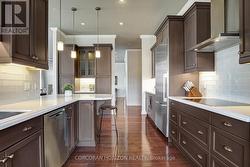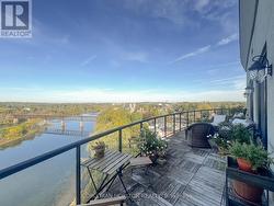 This One-of-a-Kind Luxury Penthouse was custom designed to create nearly 3,000 sq. ft. of refined living space, offering the perfect blend of elegance, comfort, and Panoramic River Views. Every window frames a breathtaking view of the river, and a full-length terrace with multiple walkouts provides a front-row seat to spectacular sunsets. The expansive and light-filled living room features a gas fireplace, seamlessly flowing into a grand dining area perfect for hosting a dinner party or large family gathering. The chefs kitchen is beautifully renovated and thoughtfully designed, with seating for five and overlooks the family room. A separate den offers the ideal space for a home office, home theatre, or additional third bedroom. Perfect for entertainers, the butlers pantry includes its own entrance, doubling as a service or catering kitchen for seamless hosting. The primary suite is tucked away in its own private wing, showcasing luxurious penthouse glamour with floor-to-ceiling windows and a walkout to the terrace. A spacious walk-in closet functions as a full dressing room complete with a center island. The show-stopping ensuite features a soaking tub positioned to take in the sweeping river views. The second bedroom is generously sized and includes its own ensuite bath, offering comfort and privacy for guests or family. With two underground parking spaces and two private locker rooms, this is elevated condo living without compromise. Set in the heart of historic Galt, you're just steps away from riverfront trails, fine dining at Cambridge Mill or Langdon Hall, the local farmer's market, and the vibrant Gaslight District. A rare opportunity to live large in one of the regions most desirable settings. (id:27)