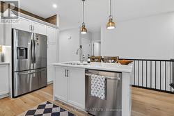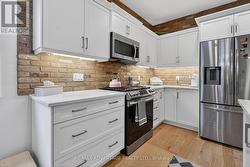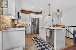 Better than new this stunning semi-detached bungalow is loaded with charm & character top to bottom including custom wood beams w matching mantle, sun tunnel to lower art studio for additional natural light and main floor Sunroom addition to enjoy outdoors all year round. Port Stanley is one of the best lakeside communities located within 1/2 hr of London, just minutes from numerous restaurants, shopping, walking trails, golf, and the beautiful shores of Port Stanley beaches. Main floor offers warm and inviting open concept living with engineered hardwoods, custom beams in living room, matching mantle on cozy gas fireplace, patio doors to a great sun room addition. Dining area adjacent to modern white kitchen w lovely centre island, brick backsplash & granite counters, lots of drawers & upper cabinetry. Good size primary bedroom with ensuite, second bedroom or office with another full bath and separate laundry w wood counter complete the main floor and lead to large lower level Art studio with natural light from sun tunnel, more storage space, plumbed in bathroom and lifebreath air exchanger & humidifier. California Shutters, custom blinds & super susan (kitchen) will stay however storage cabinets in studio and hanging system will stay unless you really really want them :). A very loved home and happy place to relax and enjoy everything this fantastic home and community has to offer here in Port Stanley Ontario. (id:27)