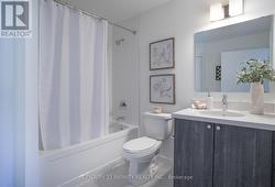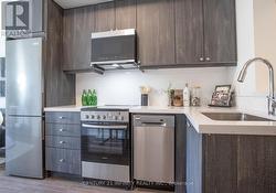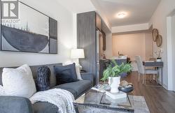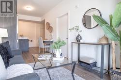 Brand New, Never Lived In! Discover Modo 51, Bowmanville's Exclusive Community Offering Exceptional First-Time Conveniences & Premium Amenities In Clarington's Condo World. This Stunning Building Features A 24-Hour Concierge Desk, A Connected 7th Floor Rooftop Terrace With BBQs, A Fully Equipped Fitness Centre & Yoga Studio, Games Room, Party Room, Library, & A Spacious Resident Lounge Designed For Relaxation & Socializing. Conveniently Equipped With 4 Elevators & 2 Garbage Chutes, This Building Truly Sets Itself Apart In Clarington. This One-Bedroom Unit With Den/Dining Features Wheelchair Accessible Doors, 9-Foot Ceilings, Quartz Countertops, Upgraded Nebula Sequoia Cabinetry With Ceramic Backsplash & Under-Cabinet Lighting R/I. A Matching Comfort Height Quartz Vanity And Soaker Tub Compliment The Semi Ensuite, Combined With Luxury Vinyl/Ceramic Flooring Throughout. Enjoy An Extra-Large Balcony With Two Walkouts, Including One From The Bedroom. This Condo Also Features Ensuite Laundry, Includes 6 Appliances & One Parking Space. With High-Speed Internet Included In The Maintenance Fees There's No Need To Pay Any Extra Bills. Ideally Located Next To The Soon-To-Be-Built GO Train Station, Within Walking Distance To Restaurants, Entertainment, Grocery Stores, Retailers, & More. With Ample Space To Relax And Recharge, The Building's Amenities Are Truly Second To None. Host Gatherings Or Celebrations In One Of The Well-Appointed Multi-Purpose Rooms Or One Of The Multi Level Out Door Common Areas With BBQs & Enjoy Elevated Condo Living At Its Finest.**Virtual Tour** (id:27)