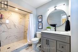 Welcome to this immaculate 3-bedroom, 4-bathroom home that has been beautifully upgraded from top to bottom. Pride of ownership shines throughout every detail! Step inside to a fully renovated main floor featuring a show-stopping custom kitchen with granite counters, center island, ceramic flooring, stylish backsplash with under-mount lighting and large side pantry for additional storage, stainless steel appliances, and pot lighting. The open layout is complemented by gleaming hardwood floors, crown moldings, and a renovated powder room. The 2nd floor features 3 spacious bedrooms, including a spacious primary bedroom with a brand-new ensuite bath (2025) and walk-in closet. The 2nd bedroom features a convenient semi-ensuite bath. All bedrooms with plenty of closet space and open airy layouts. The fully finished walkout basement offers in-law or income potential with an additional full bathroom and tons of natural light perfect for family living, a home office, or entertaining. Outside is your very own backyard paradise! Enjoy summer days in the above-ground pool (2020), relax in the enclosed sunroom with hot tub hook-up, or host gatherings on the oversized deck. Gorgeous landscaping with stamped concrete walkways, and a full interlock driveway complete the curb appeal. Additional highlights: Double car garage with direct indoor access & new side door (2025), stunning low-maintenance landscaping and gardens. Endless list of updates - just move in and enjoy! Exceptional family-friendly location, just minutes from schools, parks, shopping, and quick 401 access for commuters. This home is truly a 10 - watch the HD video for all of its features. Don't wait! Your dream home is here! (id:27)