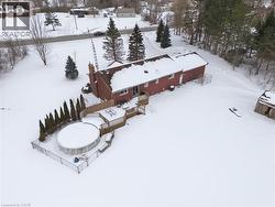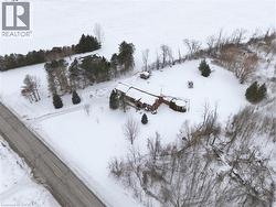 Discover peaceful country living in this all-brick, raised bungalow set on a private 1.24 acre lot surrounded by mature trees. Positioned well back from the road, the expansive driveway offers parking for 10+ vehicles - perfect for guests, trailers, or all your toys. Built with durable core slab construction, providing solid floors for the main-level, and open-concept living in the basement. Step inside through the spacious, welcoming foyer featuring dual closets and a beautiful open staircase that allows natural light to flow throughout both levels. The upper level showcases an updated kitchen with an oversized island, granite countertops, and seamless transition to the dining room with an eye-catching accent wall. The bright, spacious living room features custom built-ins framing an all-brick fireplace (not in use) and a large bay window. Three bedrooms and a 4-piece bathroom complete the upper level, with dual closets in the primary bedroom . The fully finished lower level is designed for entertaining with a built-in bar, gas fireplace, 3-piece bathroom, and flexible recreation space ideal for a playroom, home office, or future bedroom with convenient walk-up garage access and includes a utility/storage room with brand new furnace (Jan 2026). The 500+ sq ft garage comfortably fits two vehicles and includes a gas line already roughed in for a heater. Step outside into the spacious yard to an oversized back deck overlooking the above-ground pool (AS-IS) - perfect for relaxing or entertaining. Enjoy the peace and privacy of rural living while being just minutes from the downtown core of Dunnville. (id:27)