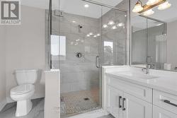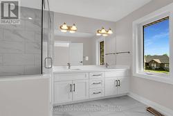 Executive 2 storey with 5 bedrooms & 3 bathrooms on a premium lot (218' DEEP) is an ideal place for a family! This brick & stone 2596 sf family home with 2 car attached garage is ready to move in! Tastefully designed with high quality finishing this home features an open concept floor plan. Great room showcases the electric fireplace. Quartz counter tops in bright kitchen & bathrooms. 4pc ensuite with large glass corner shower, & 2 sinks and walk in closet off main bedroom. Convenient second floor laundry with cupboards. Impressive 9 ft ceilings, 8 ft doors, beautiful floors & gleaming tile. Desirable location in Highland Estate subdivision close to park, walking path, rec centre, shopping, library, splash pas, pickle ball court & public school with quick access to the 401. Move in and enjoy. Other new homes for sale on Leitch - ask agent for details. (id:27)
