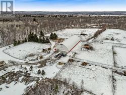A 19 acre hobby farm minutes to the Quebec border. A 60' x 160' barn with interior riding ring, 12 stalls and tack room. A garage/workshop with double doors and hay loft. Paddocks, exterior training ring and mostly cleared land. A well maintained family home features a large living room with wood vaulted ceilings, plenty of natural light and a wood burning fireplace. A great kitchen design with plenty of cabinets, center island lunch counter and an adjacent dining area with garden door giving access to a back deck, patio area and an above ground, salt system pool. A large primary bedroom with ample closet space and cheater ensuite bath. This relaxing main bath features a claw foot soaker tub and separate shower. A second bedroom and laundry closet complete the main level. A finished basement gives plenty of additional living space with a family room large enough to accommodate a home office area. A third bedroom , utility room with workshop space and firewood storage area. Propane heat, central air, central vac, wood flooring, carpet free. 200 amp service in the home, 100 amp in the barn. (id:27)