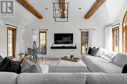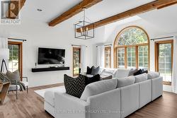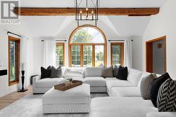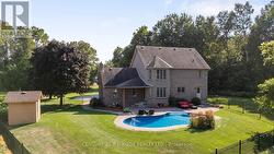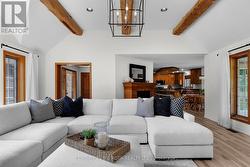 Introducing 256 Denney Drive, a beautifully crafted residence nestled on a nearly 2 acre private, professionally landscaped lot in one of Essa's most desirable neighborhoods. This exquisite property offers the perfect blend of elegance, space, and tranquility, making it a true sanctuary just minutes from Barrie, Angus, and Alliston. Spanning over 3,500 sq. ft. of finished living space, this stunning home features 4+1 bedrooms and 4 bathrooms, thoughtfully designed to accommodate both family living and stylish entertaining. As you arrive, a generous driveway welcomes you, leading to an oversized garage -- ideal for vehicles, storage, and workshop needs. Mature trees and lush landscaping frame the home, offering both privacy and striking curb appeal. Step inside to discover a residence where pride of ownership is immediately evident. The timeless color palette, paired with custom finishes throughout, sets a warm and inviting tone. The gourmet kitchen boasts elegant cabinetry, a charming bay window, and direct access to an expansive patio -- perfect for hosting gatherings or enjoying serene morning coffees. The living room is truly the heart of the home, featuring soaring 12' ceilings, exposed natural wood beams, and a stunning chandelier surrounded by large windows that flood the space with natural light. Downstairs, a fully finished basement expands your living potential, offering a large rec room, additional bedroom, and ample space to customize to your needs -- whether its a home gym, office, or media room. Step outside and unwind in your private backyard oasis, complete with a beautiful inground pool, surrounded by mature landscaping that creates a resort-like atmosphere all summer long. 256 Denney Drive is more than a home -- its a lifestyle. If you're seeking space, privacy, and understated luxury in a prime location, this property is a must-see. Don't miss this exceptional opportunity to own a truly one-of-a-kind home in Essa. (id:27)