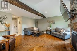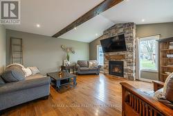 There's a gentle rhythm to life in Ridgeway, where mornings open with quiet skies and neighbours still wave as they pass by. It's the kind of place people choose when they want space, privacy, and a lifestyle not shaped by traffic or crowded streets. Nestled here, surrounded by natural beauty, is a home that reflects everything people love about Ridgeway living. Set on a generous 120' x 120' lot in a desirable family-friendly neighbourhoods, this charming 4 bedroom home blends country warmth with modern farmhouse style. Just a short walk or bike ride to the lake, it offers the ideal mix of rural tranquility and everyday convenience. This stunning 2 storey home provides over 2,200 sqft of thoughtfully designed living space, made for comfortable family living and entertaining. Inside, you're welcomed by soaring 17' vaulted ceilings, rich hardwood flooring, and sunlit rooms framed by oversized windows. The living room is a true focal point, featuring a cozy stone fireplace perfect for gatherings or peaceful evenings at home. At the heart of the home, the kitchen blends timeless style with modern function, featuring granite countertops, a large island with breakfast bar, wine storage, stainless-steel appliances, and classic white cabinetry. A formal dining room and main-floor laundry add to the home's convenience and charm. Upstairs, the oversized primary suite offers a private retreat with crown molding, double closets-including a generous walk-in and a luxurious ensuite with a soaker tub, separate shower, and tile flooring. 3 additional bedrooms offer room for children, guests, or home offices, each with large closets and access to a beautifully finished 4 piece bathroom. Whether you're looking for a quiet place to raise a family or want the serenity of rural living with modern comforts, this home offers the best of both worlds. Come experience the beauty, space, and warmth of country living at its finest, the perfect setting for creating lasting family memories. (id:27)