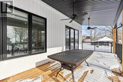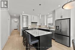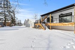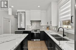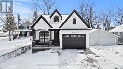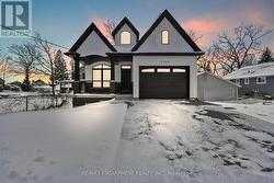 Experience effortless lakeside living in this beautifully designed bungaloft, where modern style meets relaxed comfort just steps from the Lake Erie waterfront. The classic black-and-white exterior with board-and-batten detailing makes a striking first impression, enhanced by an attached garage and inviting covered front porch. Inside, white oak hardwood floors and abundant natural light create a warm, airy feel throughout the open-concept living space. The designer kitchen is a true showpiece, featuring floor-to-ceiling cabinetry, stone countertops, and a statement wine fridge. Expansive patio doors lead directly to the back deck, with stairs connecting to the upper balcony-ideal for seamless indoor-outdoor entertaining. Unwind in the inviting living room with a cozy gas fireplace, or take the gathering outside. The thoughtfully designed layout offers four bedrooms and 2.5 bathrooms, including a serene primary suite with a sleek ensuite. The loft level is a standout, offering two additional bedrooms, a full bathroom, and access to an expansive terrace-perfect for hosting under the stars, enjoying lake breezes, or taking in peaceful evening views. With multiple outdoor living spaces, lake views from the rear, and an unfinished basement ready for your vision, this home delivers a refined yet relaxed lifestyle just moments from the water. (id:27)