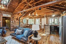 Gorgeous log cabin waterfront on Lake Simcoe on leased land within 1 hour from Toronto and the GTA. Your dream getaway awaits you. This cottage has been extremely well maintained and improved with newer underpinning, a metal roof, new water pump, an enclosed front porch for your enjoyment overlooking the lake with no bugs to bother you. The property is well levelled and very private for your own enjoyment. The plank hardwood flooring has been refaced, cathedral ceilings, ceiling fans for extra comfort, air conditioning, natural breeze from the water makes it extra comforting and incredible for those who lack a good sleep. Wake up to fishing or boating off your own dock or just enjoy sitting and enjoying the view of peace and tranquility. Do not miss out on this one! The property is a LAND LEASE. 3 Season cottage "as is where is". Possible to make into a 4 season with some improvements. Can enjoy the winter months as well on snowmobile and driving access on the seasonal roadway in the winter. Open House Saturday February 7 10-11 am (id:27)