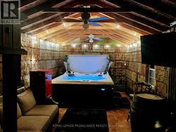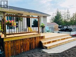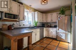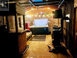 This immaculate, brick & vinyl bungalow offers a perfect blend of comfort and entertainment in a highly desirable, quiet cul-du-sac. The home features 2+1 bedrooms (can be converted back to 3 main floor bedrooms) and 1-4pc, 2-2pc bathrooms, making it spacious and well-equipped. It sits on a private, fully fenced lot with a large yard, ideal for families and pets. Enjoy the sun on the large rear deck with a new covered pergola or cool off in the all new in 2025 above-ground pool. A front tiered deck adds curb appeal and a second spot for relaxation. Unique Sip & Soak Room: The single insulated garage has been creatively transformed into an incredible 'sip & soak' entertainment space, complete with a cozy woodstove (professionally installed, not WETT certified) , hot tub (can be purchased separately), and bar area. This is the perfect retreat for all seasons. The property is updated and well maintained throughout. Roof re shingled in 2021, furnace 2010, A/C 2025, sewage pump 2022, and sump pump 2023, woodstove in basement 2025. It's ideally situated for commuting, offering easy access to the 401. The location provides a peaceful setting while remaining close to downtown and excellent shopping. (id:7525)