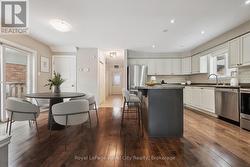 Welcome to 77 Laughland Lane, a spacious craftsman-style home set on a premium oversized pie-shaped lot in Guelph's highly sought-after South End. Ideally located within walking distance of Westminster Woods Public School and close to parks, amenities, and Highway 401, this property offers exceptional versatility with 4 bedrooms plus a legal basement apartment-ideal for multi-generational living, investors, or those seeking a mortgage helper. Inside, the carpet-free main home showcases engineered hardwood flooring and an expansive, open-concept layout designed for both everyday living and entertaining. The eat-in kitchen features stainless steel appliances, a central island, and generous prep and storage space, flowing seamlessly into the dining area with walkout access to the backyard. The spacious double living room is filled with natural light from large windows overlooking the yard. Upstairs, the oversized primary bedroom provides a true retreat, complete with its own dedicated ensuite. Three additional bedrooms share a well-appointed 4-piece family bathroom. This includes the versatile third-floor loft, which is perfect for a home office, studio, or separate family room. A convenient second-level laundry room enhances everyday functionality. Outside, the expansive pie-shaped lot offers rare outdoor space and privacy, anchored by a beautiful inground saltwater pool and ample room for entertaining or quiet enjoyment. The legal basement apartment is thoughtfully designed with its own separate entrance, full kitchen, 4-piece bathroom, and private laundry, providing excellent income potential. The property is currently rented for $5,022 per month plus utilities, with vacant possession available May 1st. A rare offering that delivers exceptional value for both families and investors. (id:27)