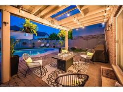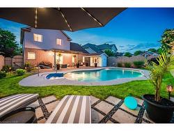 Stylishly Updated for Modern Living! Located in Guelphs sought-after south end, this beautifully upgraded home offers over 3,000 sqft of finished living space, including 3 bedrooms and 4 bathrooms perfect for todays busy family. With undeniable curb appeal, the home welcomes you with a charming covered porch and double-door entry into a bright, inviting foyer. The first floor boasts soaring 9-foot ceilings and hardwood floors, which continue throughout the second level. The formal dining room sets the tone for elegant entertaining, featuring full-height paneling, crown molding, and a striking contemporary chandelier.The heart of the home is the showstopping eat-in kitchen, complete with two-tone cabinetry, quartz countertops, stainless steel appliances, and a sunny breakfast area with walkout to the backyard. A cozy family room anchored by a gas fireplace and custom built-in bookshelves is the perfect space to unwind. Upstairs, rich hardwood flooring continues throughout, leading to the luxurious primary suite with a bay window, walk-in closet, and a spa-like 5-piece ensuite featuring a jetted Jacuzzi tub.The fully finished basement offers exceptional flexibility ideal for a home office, gym, playroom, or guest suite, complete with a full bathroom. Outside, the fully fenced yard is your private retreat, featuring an in-ground pool, mature landscaping, covered patio area, and an insulated pool house with hydro. Recent updates include a new pool liner, cover, heater, and equipment, as well as updated windows, furnace, AC, staircase, flooring, kitchen cabinetry, and much more!Located minutes from schools, parks, amenities, and the 401 this home truly has it all.