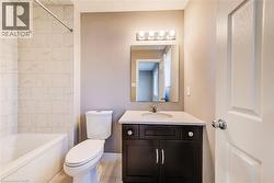Welcome to 77 John Brabson Crescent in Guelph!This two story semi-detached home is only five years old and is located in wonderful Kortright East which makes it ideal for commuters but also close to many amenities. Step inside and find a handy two piece bathroom for your guests. The modern dark cabinet set in kitchen contrasts nicely with the bright white hard surface counter tops. There is plenty of room for the home chef here to work and with the open concept layout also entertain or watch the kids. The main floor is very bright and inviting but follow me upstairs to find 3 bedrooms, the family bath and the laundry room. Just off the primary bedroom you will find a walk in closet and another four piece bath for the ensuite. The basement is unspoiled and just awaiting your ideas so don't wait book your showing today! (id:27)