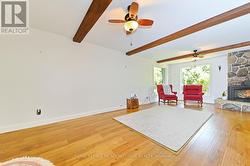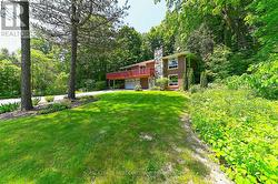 A tree lovers haven just minutes from downtown's prime Park Area. If you are looking for a a superb location, encompassing privacy and steps from conveniences look no further. Over an acre at the end of a tree-lined cul-de-sac with nature at your doorstep. Solid custom home boasting many oversized windows allowing a ton of light in plus all the amazing views of forest and mature landscaping, fabulous oak and hickory floors, stone feature walls, a gas fireplace and a good size garage. It boasts a beautiful Barzotti kitchen with plenty of cabinetry and high-end appliances. There is a main floor rec room with the gas fireplace, a bathroom, laundry space and garage access. The interlock driveway fits at least six cars and there is a wrap-around deck to enjoy the trees! Spotlessly clean and meticulously cared for. Walk to the Farmers market, library and fairground plus shops, cafes, restaurants, the hospital and the GO. Minutes from the adorable Glen Williams Artisan Village with all its charm. Ideal for tree and nature lovers. The lot also includes a secondary ownership shared parcel just over 1 acre of land with Silvercreek running through it, exclusively used by the 4 laneway owners. Feels like country in town but featuring a natural gas furnace! A rare offering by the original owners on a fabulous street in town! (id:27)
