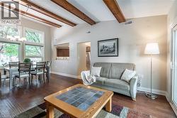 Welcome to this beautifully maintained bungalow in the sought-after gated 55+ community of St. Elizabeth Village. This 1,232 sq. ft. home offers true one-floor living with no stairs, an attached garage, and a double driveway that fits two vehicles—perfect for ease and convenience. Inside, you’ll find 2 spacious bedrooms and 1.5 bathrooms, including a large main bath featuring a roll-in shower—ideal for those with mobility needs. The open-concept kitchen, living, and dining area boasts soaring 16-ft vaulted ceilings, creating a bright and airy feel. Rich hardwood flooring runs throughout the main living space and both bedrooms, offering a warm and elegant touch. Tucked into a quiet pocket of the Village, the home offers tranquil views of one of the community’s 14 scenic ponds—a perfect spot to relax and unwind. St. Elizabeth Village offers an unmatched lifestyle with resort-style amenities, including a heated indoor pool, gym, saunas, hot tub, golf simulator, woodworking shop, stained glass studio, and wellness services such as a doctor’s office, pharmacy, and massage clinic—all within the community. Located just minutes from shopping, grocery stores, restaurants, and with public transit that comes right into the Village, everything you need is close at hand. This is retirement living at its finest—don't miss your chance to call this exceptional home yours! Property taxes, water, and all exterior maintenance are included in the monthly fees. RSA (id:27)