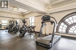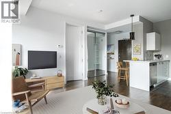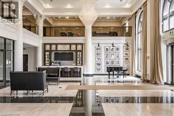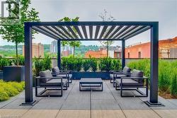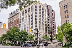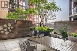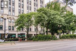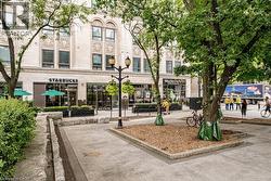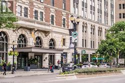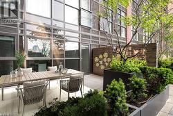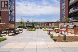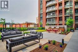 Rarely Available Terrace-Level Unit! This bright 1-bedroom condo offers sunny southern exposure and beautiful escarpment views with the added enjoyment of the rooftop amenities right in your own backyard. The patio is bordered by planters and privacy walls, yet opens seamlessly to the shared rooftop terrace featuring lounge areas, bistro seating, gas fireplace, BBQs, and more. A true standout, the spacious 18' x 12.5' private patio is accessible directly from the living room—perfect for relaxing or entertaining. Inside, enjoy open-concept living with laminate flooring, stainless steel appliances, quartz countertops, custom window blinds, and generous closet space. Additional features include in-suite laundry, and an one underground parking space. The building is rich in amenities: a party room, gym, media room, boardroom, and building security. Plus, a Starbucks is located right at the main level—just take the elevator down and step outside. Situated in the heart of Hamilton’s revitalized downtown core, you're steps from Gore Park, trendy restaurants, shops, and local culture. Don’t miss this chance to own a unique urban retreat at the iconic Residences of Royal Connaught. (id:27)