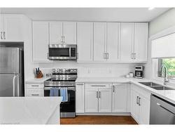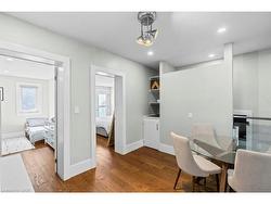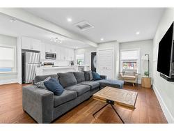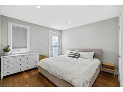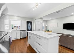 Extensively updated in 2021, with a large backyard, and walking distance to trendy Ottawa St N! The large covered front porch makes for an attractive and welcoming first impression. Entering the home, you'll see it features an open concept layout, with engineered hardwood and potlights throughout. The kitchen is the heart of the home, offering a huge centre island. Along with white cabinetry, quartz countertops, a double sink overlooking the porch, this kitchen is ideally made for both daily living and entertaining. The living room includes a coat closet and front window to bring in natural light. The dining room is tucked behind the kichen/living, offering space for a dining set as well as enough room for a storage hutch, kids toys, or even desk for a work station. At the back of the home, you'll find two good sized bedrooms, with the bright primary offering a glass door to the back deck. A renovated 3 piece washroom, with standing shower, completes the main level. Downstairs, the finished basement provides versatility for your family's needs. The family room here is the perfect area for cozy movie nights and a kids play room! The basement also offers a separate office space. Complete with a window for added natural light, this room ensures privacy without taking away from other living areas. With an additional 3 piece washroom, laundry room, and plenty of storage, you'll find this basement suits every need. Back upstairs, you can utilize the side door to access the backyard. This fully fenced yard has enough space for outdoor dining, a large area for kids and pets to play, as well as a shed for your storage. Two cars? No problem! The driveway is long enough to accommodate both. Located just a few streets over from trendy Ottawa St N, parks, and schools, you're not far from easy commuting access either. There's lots to love here at 18 Park Row N!