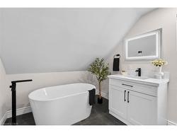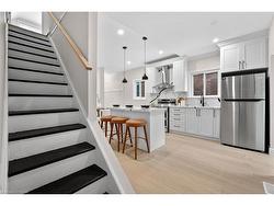 Welcome to 201 Grosvenor Avenue, where modern design meets community charm in one of Hamilton's coolest neighbourhoods-Crown Point. This beautifully updated 2+1 bedroom, 2 bathroom home is the perfect blend of style, comfort, and functionality, ready to create years of great memories.Step inside and you're immediately greeted by soaring ceilings and a bright, cozy living space featuring a statement feature wall and electric fireplace, all anchored by an oversized window that looks out onto your private deck-ideal for both relaxing evenings and lively gatherings.The open-concept designer kitchen flows seamlessly from the living area, making it perfect for entertaining and everyday family life. Finished with stainless steel appliances, modern cabinetry, and plenty of prep space, this kitchen truly sits at the heart of the home. The main level also offers a versatile bedroom-ideal as a home office or guest room-along with oversized laminate flooring and a full bathroom complete with a glass-enclosed standing shower.Upstairs, retreat to your private primary suite, featuring an oversized bedroom, a custom built-in his-and-hers closet, and a spa-inspired ensuite with a four-piece bath, standing shower, tub, and a window overlooking the backyard.Outside, the home continues to impress with an oversized poured concrete patio and a generous backyard designed for entertaining. Enjoy the built-in bar setup, TV inserts, and a shed for extra storage-perfect for hosting friends, family, and game nights.Additional highlights include two parking spaces and a prime location just minutes from Ottawa Street, known for its vibrant shops, cafés, and community atmosphere.This is modern Crown Point living at its best-move in, unpack, and enjoy.
