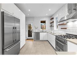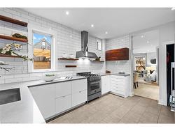Coveted Kirkendall neighbourhood, solid brick 19th Century Victorian home with absolutely stunning renovations while maintaining its charm and character. Main floor features a bright, open-concept living and dining area with original hardwood floors, soaring ceilings, pot lights, and a fireplace.The impressive modern kitchen showcases a sleek contemporary design with Caesarstone quartz countertops, white lower cabinetry paired with custom black walnut upper cabinets and shelving, a Bertazzoni professional gas range, Fisher & Paykel refrigerator, and Miele dishwasher. A full-height subway tile backsplash, porcelain floor tile, pantry cabinetry, pot lights, abundant natural light, and walk-out to a raised deck and backyard complete this exceptional space.Upstairs offers three well-appointed bedrooms plus a versatile home office nook or walk-in closet, all featuring original hardwood floors, large windows, and a thoughtful mix of original and replica baseboards and trim. The beautifully updated full bathroom is both spacious and elegant, with a soaker tub, marble vanity, pot lights, and plenty of natural light.Enjoy outdoor living with a raised deck and covered porch off the kitchen overlooking a fully fenced backyard offering excellent privacy. Parking for two cars is available and easily accessible. Numerous updates include electrical wiring, insulation, select windows, fencing, kitchen, and bathroom—making this a truly turnkey home in a prime location.Steps from Locke St, enjoy the best of dining delights and truly the best part of the city. A five minute walk from Earl Kitchener Elementary School, all amenities, public transit and parks makes this location second to none.