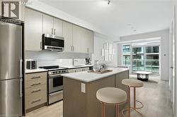 Experience stylish urban living at its finest in this beautiful Kiwi Condo, ideally located in the heart of downtown Hamilton. This vibrant community puts you just steps from shops, restaurants, entertainment, transit, and everything the city has to offer. The building is packed with upscale amenities, including a state-of-the-art gym and yoga studio, a welcoming concierge, a rooftop terrace with BBQs and sweeping city views, a dog wash station, mail room, and a spacious party room with fireplace and full kitchen—perfect for entertaining. Inside the unit, you’ll find a thoughtfully designed 1-bedroom, 1-bathroom layout with an airy open-concept kitchen and living area. The sleek, modern kitchen features stainless steel appliances, an island, and ample storage, while the living room flows effortlessly to a large private balcony through sliding glass doors. Convenience is key, with in-suite laundry and controlled entry for peace of mind. Parking is available at nearby municipal lots, making this property as practical as it is stylish. Whether you’re a first-time buyer, downsizer, or investor, this condo is the perfect opportunity to secure a slice of Hamilton’s thriving downtown lifestyle. (id:27)