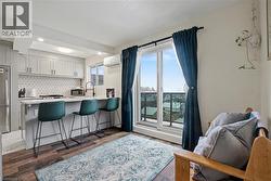 Welcome to this beautifully updated oversized end-unit 1-bedroom condo located in the highly desirable Bartonville/Glenview neighbourhood. Perfectly situated for commuters, this home offers extremely convenient highway access and is just minutes from shopping, dining, and everyday amenities. This spacious unit features breathtaking views from the rear of the building, highlighted by a large private balcony that spans the entire length of the unit—ideal for relaxing or entertaining. The kitchen and bathroom have both been tastefully updated within the past two years, providing a modern, move-in-ready living space. Surrounded by nearby parks and scenic hiking trails, this property offers the perfect blend of urban convenience and outdoor lifestyle. An excellent opportunity for first-time buyers, investors, or those looking to downsize. (id:27)