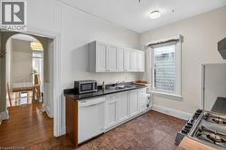 Charming 1895 Victorian Rowhouse steps from Hess Village. Step back in time while enjoying modern comforts in this character-rich home. Featuring high ceilings, original hardwood floors, this home retains its historic charm while boasting updated mechanics, including plumbing, electrical, furnace, roof, and flashing. The main floor offers a living room with a gas fireplace, two spacious bedrooms, and a generous eat-in kitchen. This chef’s haven is complete with a double sink, gas stove, skylight, pot lights, and a large window overlooking the yard. The kitchen also includes a built-in dishwasher and offers convenient access to the yard. Two 2pc bathrooms are located on the main floor, with one featuring hook-ups for a tub. Upstairs, the second level features another kitchen (with double sink and built-in dishwasher), a living room, a 3pc bathroom, bedroom, and a laundry room. The third level offers an additional two bedrooms. This home presents a fantastic opportunity for investors or homeowners looking for rental income. It can easily be converted back into two units (legal non-conforming) a 2-bedrm unit with laundry on the main and basement level, and a 3-bedrm unit with laundry on the upper levels. Located in the highly sought-after Hess Village, this property is just steps away from trendy shops, restaurants, and entertainment. The backyard is fully fenced, with new sod being added and a shed for extra storage. You’ll enjoy easy access to the main level kitchen, as well as a separate stairway leading to the second level. There’s plenty of street parking available, and the yard could easily be reduced in size to add rear parking. Original features add unique charm to this property: restored windows, original hardware with beveled glass on the front door, abundant hardwood throughout. Parking can be added via the rear alley. Seller is open to rebating the cost or coordinating installation after closing, contingent on an acceptable sale price. (id:27)
