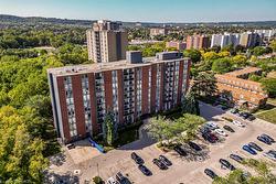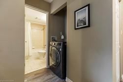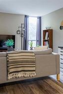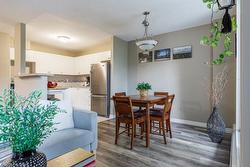 Welcome home to this bright, spacious one-bedroom condo, all set for you to move in! The open-concept layout is thoughtfully renovated, featuring ceramic and high-quality laminate flooring for a modern feel. The kitchen boasts updated cabinetry, stainless steel appliances, granite countertops, and a stylish patterned tile backsplash, complete with a breakfast bar for easy dining. The dining area flows seamlessly to a sunny balcony overlooking a wooded trail and scenic escarpment views. The bathroom has been updated with a sleek vanity and fully tiled bath and shower. The bedroom offers plenty of natural light through a floor-to-ceiling window and includes a roomy closet. In-suite laundry hookups add extra convenience. Enjoy a pet-friendly building with low fees that include heat, water, and more, plus your own parking space and storage locker. With walking trails, parks, and unbeatable proximity to shopping, transit, and highway access, this is an ideal spot for first-time buyers or downsizers alike!