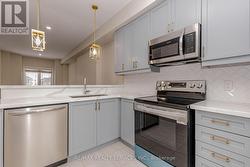 Welcome to this very bright and spacious 1840 sq. ft. home located in one of Hamilton's newest and most sought-after neighborhoods. This beautifully maintained original-owner property offers 3 bedrooms and 4 washrooms with thoughtful design and over $25,000 spent on recent upgrades, including fresh paint, new carpeting, and new pot lights throughout. The main floor features a generous family room with pot lights, elegant French doors, and a 4-piece washroom, offering excellent rental or in-law suite potential, along with direct garage access and a dual entrance. The second level showcases a huge open-concept living and dining area with 9-ft ceilings, paired with a chef's delight kitchen featuring stainless steel appliances, quartz countertops, and a stylish backsplash. The breakfast area, combined with the kitchen, opens onto a private balcony, creating the perfect space for morning coffee or outdoor relaxation. The third level offers a spacious primary bedroom with a walk-in closet and 4-piece ensuite, along waith two additional well-sized bedrooms and convenient upper-level laundry. Situated on a no-sidewalk lot, this home is ideally located close to plazas on both sides with all major grocery stores and everyday amenities just steps away-ideal for modern family living. (id:27)