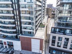 ONE OF ONE! This 4th floor corner unit cannot be replicated: the only 607sf terrace with North AND West exposure - enjoy space, privacy and a view. A floorplan designed with lifestyle in mind, starting with a generous entryway with front hall closet, perfect for welcoming guests. The primary suite is tucked away, featuring a three piece ensuite with glass shower and full closet, the perfect hideaway for busy professionals who value sleep. The open concept main living space comes predecorated with floor to ceiling windows with inspiring city views, outfitted with privacy shades if that’s more your style. Tall ceilings and neutral floors make a perfect backdrop for any decor, and the open floor plan makes for endless furnishing opportunities. This space is anchored by an efficient kitchen finished in light oak cabinetry with a sleek penny tile backsplash, modern stainless appliances, stone counter and undermount sink. A second full bedroom with closet, and a stylish 4 piece bath ensure this space will work for any lifestyle. Sold with 1 underground parking (close to the stairs!), and 1 locker. Reasonable monthly fee includes maintenance, building insurance and central air! Added bonus: roof top patio with bbqs, party room, full executive gym, pet spa - complimentary amenities to enjoy!