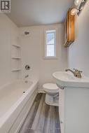 Welcome to this charmingly renovated two-level home nestled in a quiet, family-friendly area of Hamilton. Offering over 700 square feet of thoughtfully designed living space, this home combines modern updates with comfortable, functional living.Step inside to discover an open-concept main floor featuring brand new laminate flooring and a fresh, professional paint job throughout. The layout allows for easy flow between the living, dining, and kitchen areas. The kitchen has been fully updated with brand new appliances, sleek cabinetry, and modern finishes, ready for you to move in and enjoy.Upstairs, youll find two bright and cozy bedrooms, perfect for a small family, home office, or guest space. Step outside onto your brand new deck, perfect for morning coffee or evening BBQs. Close to amenities and public transit, this home also includes parking for one car, adding convenience to city living.Whether you're a first-time buyer, downsizer, or investor, this fully renovated property checks all the boxes. (id:27)