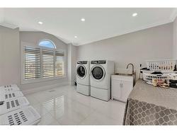 Welcome to 7 Bernini Court a beautifully appointed 3,480 square foot two-storey home located in a quiet, family-friendly neighbourhood on Hamilton's West Mountain. Set on a generous 109 x 217 ft lot, this property offers impressive curb appeal with professionally landscaped front and rear yards, creating a peaceful, resort-like atmosphere. The large driveway provides parking for up to nine vehicles and leads to a spacious three-car garage. Step through grand 8-foot double doors into a bright, two-storey vaulted foyer that sets the tone for the homes open and airy layout. The main floor features elegant 30 x 30 white porcelain tile throughout the dining room and eat-in kitchen. A clean, modern design includes white cabinetry, quartz countertops and backsplash, a built-in espresso station with full-height pantry storage on both sides, and a large island perfect for everyday meals or entertaining. Sliding doors off the dinette lead to a 16 x 35 ft covered porch overlooking the backyard oasis complete with a 16 x 32 ft inground saltwater pool, ideal for hosting family and friends. Upstairs, you'll find four spacious bedrooms and two well-appointed bathrooms, along with a convenient laundry room all featuring heated floors. The finished basement includes a self-contained one-bedroom apartment with a separate entrance, perfect for extended family or rental potential. This home offers comfort, space, and style a great fit for families or those looking for flexible living options in a desirable location.