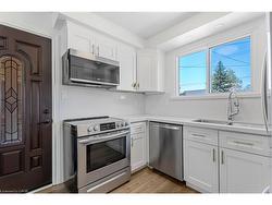 Stunning Newly Renovated 4-Bedroom Home on Hamilton's East Mountain! Step into this beautifully updated 2-Storey Home, ideally located on a premium lot in a sought-after neighbourhood. Featuring a brand-new custom kitchen with sleek Corian countertops, matching backsplash and luxury vinyl flooring, this home is designed for modern living. Enjoy the charm of oak staircase accents, updated lighting, new windows, and both interior and exterior doors. Major updates include the roof, furnace, and central air-all completed in 2020. The spacious, paved driveway fits up to 5 vehicles and includes a convenient carport. Relax or entertain in the huge, fully fenced backyard complete with two storage sheds. Move-in ready and truly a must-see-don't miss your chance to own this gem!