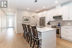 Welcome to 9 Jack Street, Huntsville. Conveniently located within walking distance to shopping & minutes to the waterfront in historic downtown Huntsville. This upgraded 2-bedroom, 2-bathroom unit is virtually brand new & includes upgraded engineered wood flooring throughout the main living area, ceramic tiled entryway, quartz counter tops, soft-close cabinets, under-counter lighting, pot lighting, main floor laundry with tiled floor and custom cabinets & more. This impressive unit has an open concept living room, dining area, and kitchen. The kitchen features a large center island with a quartz countertop, 42-inch base cabinets. The upgraded appliances, which are included, are stainless steel Frigidaire Professional series. The bright and spacious living room walks out to a large private covered deck, a great place to relax and enjoy a BBQ. The spacious primary bedroom includes a large picture window looking out to the woods, which provides loads of natural light. The bedroom also includes a private ensuite with a walk-in glassed shower and a walk-in closet with custom-built-ins for your wardrobe. On the main floor, you will also find an additional bedroom or office and a laundry room with custom cabinets and a quartz countertop. There is access from the laundry room to the garage. The lower level offers a walkout and is ready to be finished. From the walkout, there is access to a deck that walks off to the lawn and access to a walking trail, perfect for pet lovers. The basement offers plenty of room for an additional bedroom(s), family room, storage, as well there is a rough-in for a third bathroom. This home includes full town services, high-speed internet, an economical natural gas forced air furnace, central air conditioning, and an air exchanger. Located on a private street, this unit is perfect for someone looking for low maintenance and a peaceful location. Lawn cutting, gardening, and snow removal are included. (id:27)