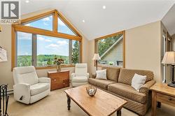 Welcome to 131 Grandview Hilltop Drive, Unit 1 — a rare, fully furnished end-unit bungaloft offering 1,430 sq ft of thoughtfully designed living space. This bright 2-bed, 2-bath condo with loft blends comfort, versatility, and investment potential. Wrapped in panoramic windows, the home is filled with natural light and offers maintenance-free living in a highly desirable setting. One of the few units in the area approved for Airbnb and Vrbo, this property presents exceptional rental opportunities. With two separate entrances, it can function as two independent suites. Live in the main unit while renting the self-contained one-bedroom, one-bath suite for added income, or enjoy the entire space for family and guests. The open-concept main living area features a cozy wood-burning fireplace and flows seamlessly into the dining area and well-appointed kitchen. Upstairs, a rarely offered loft provides generous space for guests or family, complete with a 3-piece bath. Step outside to your large private patio and take in serene, picture-perfect views while enjoying morning coffee or sunset dinners. Ideally located near Grandview Golf Club, Deerhurst Highlands Golf Course & Resort, Hidden Valley Ski Resort, Limberlost Forest and Wildlife Reserve, Arrowhead Provincial Park, and the shops and restaurants of downtown Huntsville. With exterior maintenance fully managed, this property offers true lock-and-leave convenience. Whether you’re seeking a peaceful year-round retreat, a smart investment, or both, this exceptional condo truly checks every box. (id:27)