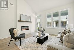 BRAND-NEW BUNGALOFT WITH LUXURY FINISHES. Welcome to this stunning, brand-new, never-lived-in land lease bungaloft townhome, offering a rare combination of modern design, energy efficiency, and move-in-ready convenience! Nestled in a vibrant all-ages community, this land lease home is an incredible opportunity for first-time buyers and downsizers alike. Step inside to find soaring vaulted ceilings and an open-concept main floor designed for effortless living. The kitchen is a true showstopper, featuring quartz countertops, stainless steel appliances, an oversized breakfast bar, a tile backsplash, a built-in microwave cubby, and full-height cabinetry that extends to the bulkhead for maximum storage. The inviting living room boasts a cozy electric fireplace and a walkout to a private covered back patio, perfect for relaxing or entertaining. The main floor primary bedroom offers a 4-piece ensuite with a quartz-topped vanity plus a walk-in closet. A second main floor bedroom is conveniently served by its own 4-piece bathroom. Enjoy the convenience of in-floor heating throughout, main-floor in-suite laundry, and a garage with inside entry to a mudroom complete with a built-in coat closet. Upstairs, a spacious bonus family room/loft offers endless possibilities as a second living space, home office, or guest room, along with an added second-floor powder room for extra convenience. Smart home features include an Ecobee thermostat, and comfort is guaranteed with central air conditioning and Energy Star certification. Eligible First Time Home Buyers may be able to receive up to an additional 13% savings on the purchase of this home through the proposed Government FTHB Rebate Program. (id:27)