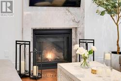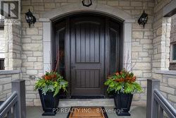 Stunning stone & brick home in the heart of King City offering over 4,000 sq ft of finished luxury living space. Over $250,000 in upgrades Featuring 5 bedrooms, 6 bathrooms, 10 ft ceilings on the main, 9 ft on the second and basement, 8 ft interior doors, 24 x 24 porcelain tiles on main, 5" wire-brushed hardwood flooring on main and second, crown moulding, wainscoting, and designer lighting throughout. Modern custom kitchen with extended uppers, farmers sink, and premium Thermador appliances. Spacious living area with floor-to-ceiling marble gas fireplace. Main floor office with double french glass doors. All bedrooms include their own upgraded bathrooms with quartz counters, 12x24 tiles, and frameless glass doors. Primary suite features a freestanding tub, double vanity, and frameless glass shower. Professionally landscaped front & back yard with gas BBQ hookup, outdoor conduits, and 2 EV plugs in garage. Finished basement includes a fitness room, large recreation area, Great room with electric fireplace, storage rooms, cantina, and 3-pc bath. Additional features include custom closet organizers, upgraded window coverings, second-floor laundry, solid 3-lock fiberglass main door, and 200-amp electrical panel. Premium lot with unobstructed east views-luxury living in a prime King City location. (id:27)