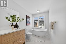 Welcome to the Camden Model in sought-after Riverview Shores. This modern elevation end unit offers 2,160 sq. ft. of finished living space and has been thoughtfully upgraded throughout, including central air conditioning and hardwood flooring for lasting comfort and value. The stylish kitchen features quartz countertops, Muskoka kitchen cabinetry, and a functional layout ideal for everyday living and entertaining. The primary suite is a true retreat, complete with a freestanding soaker tub and a walk-in tile and glass shower, blending modern design with spa-like comfort. A rare combination of contemporary finishes, generous space, and an excellent Kingston location, this end-unit offers refined living in one of the area's most desirable communities. (id:27)